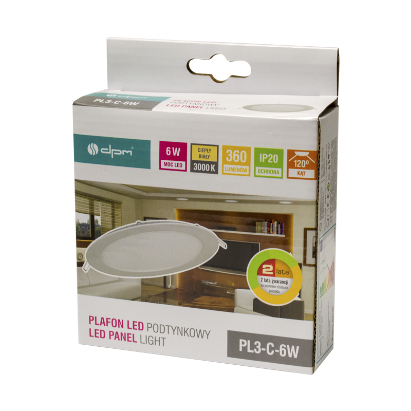 LED panelė 6W /230VAC apvali 3000k, 360lm WW įl.