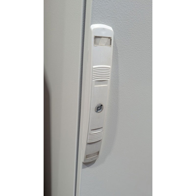 Metalinė dežė ir durelės, montažinė plokštė, užrakto sistema, sandarinimo gumos, aklidankčiai. Pagaminta iš lakštinio plieno.