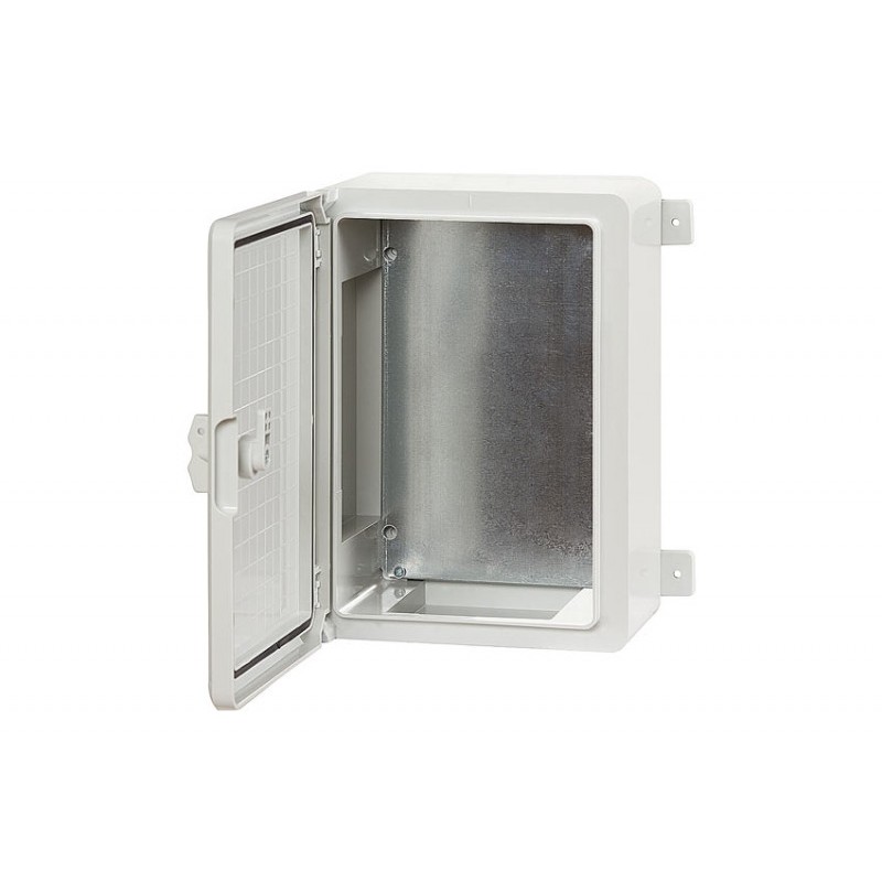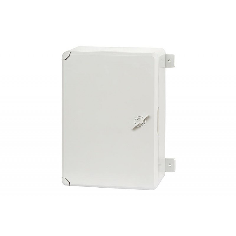 Paskirstymo skydas, plastikinis, su montavimo plokšte, IP65, pilkomis durimis. Rakinamas. 240x180x130 mm.