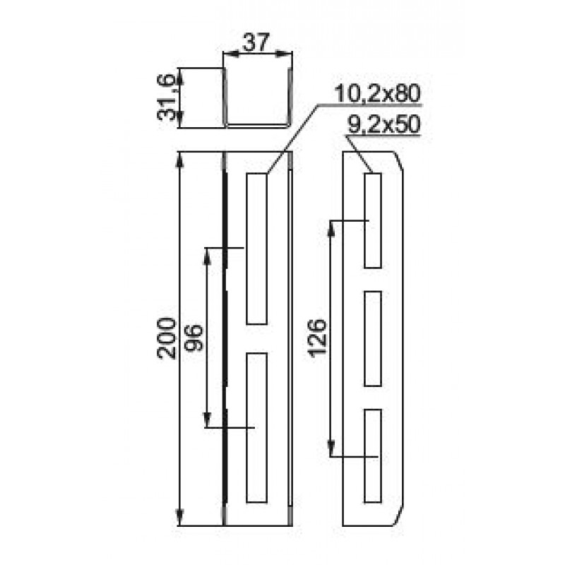 Profilio jungtis LC40H35MC. Skirta sujungti profilius. Plotis: 400 mm. Aukštis: 35 mm. Ilgis: 200 mm. MC metalas su magneliu (padidintas antikorozinis atsparumas).