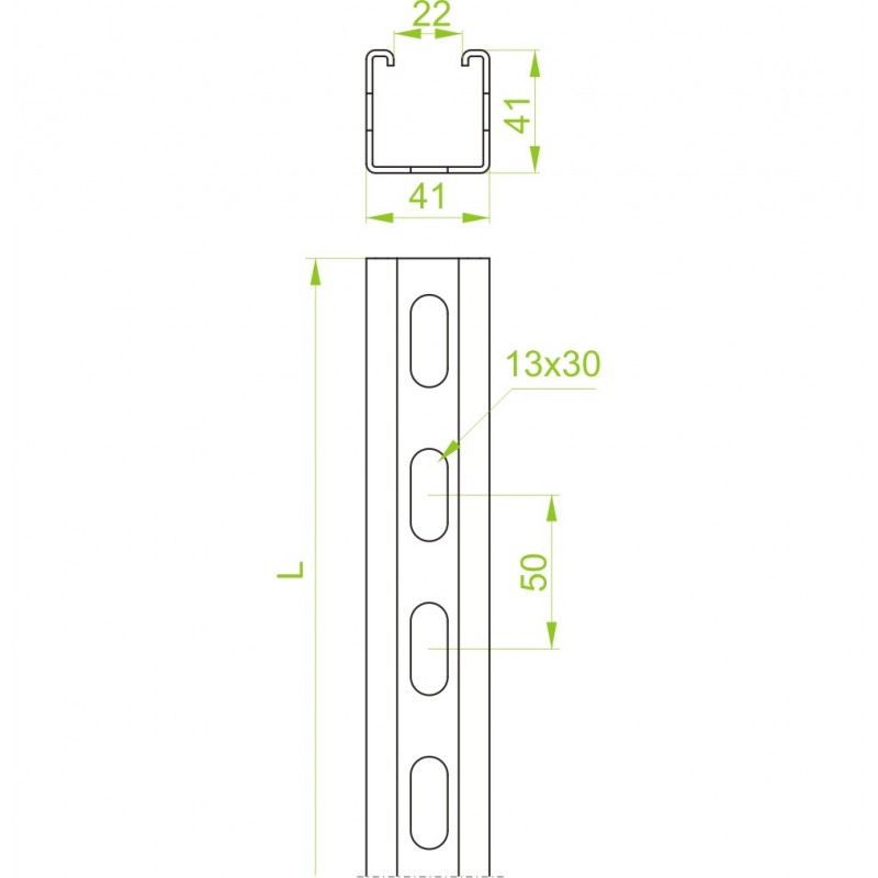 U formos profilis. Perforuotas. Kabelinių, apšvietimo sistemų montavimui - tvirtinimui. MC metalas su magneliu (padidintas antikorozinis atsparumas).
